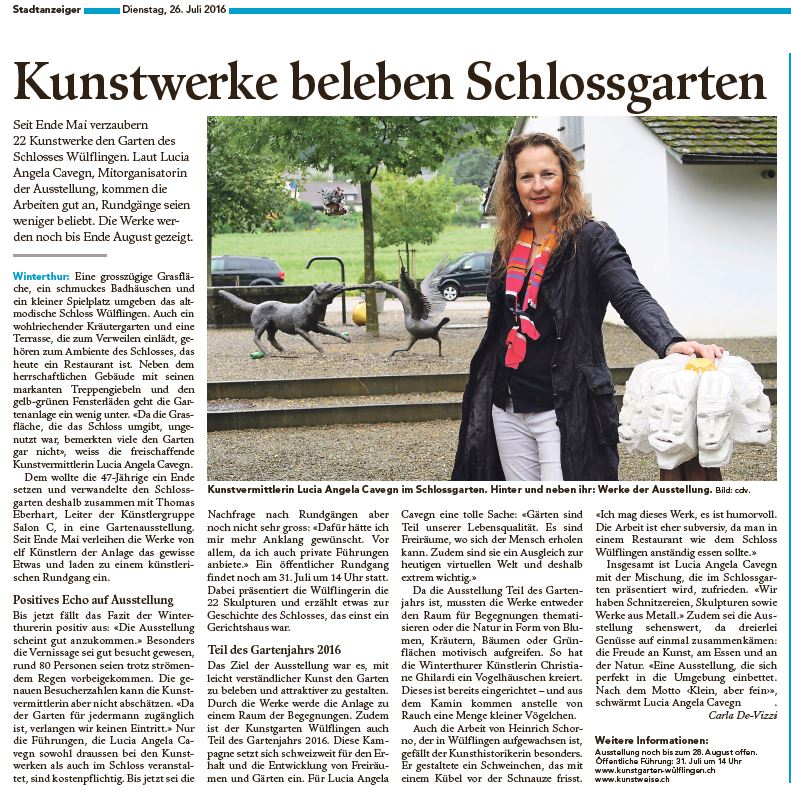Von Lucia Angela Cavegn und Thomas Eberhart kuratierte Ausstellung "KunstgARTen Schloss Wülflingen"