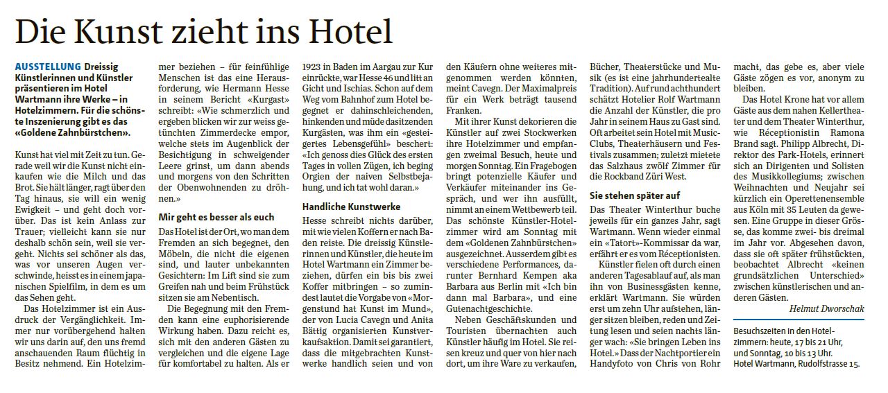 Von Lucia Angela Cavegn und Anita Bättig kuratierte Ausstellung im Hotel Wartmann, Winterthur